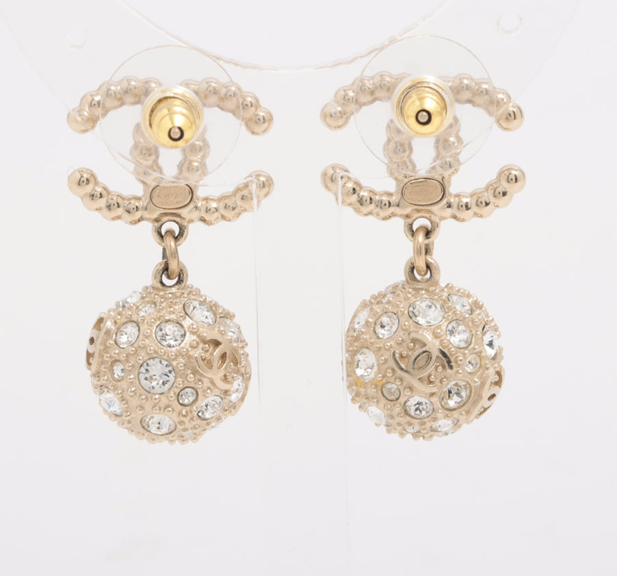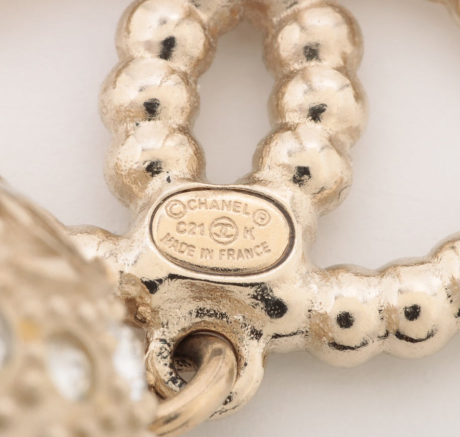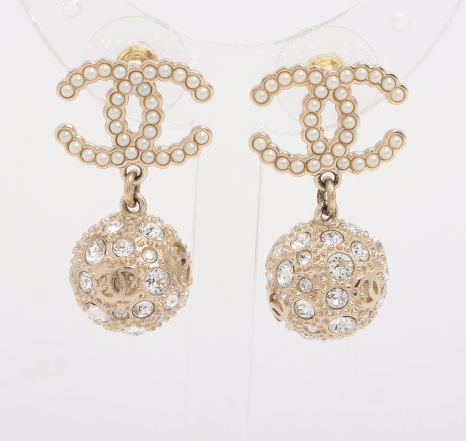 Chanel Crystal Pearl CC Drop Earrings
